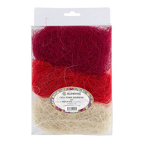 Сизалевое волокно BMG-30 MIX «Blumentag» 30 ± 3 г, цв.03 Белый/красный/ бордовый