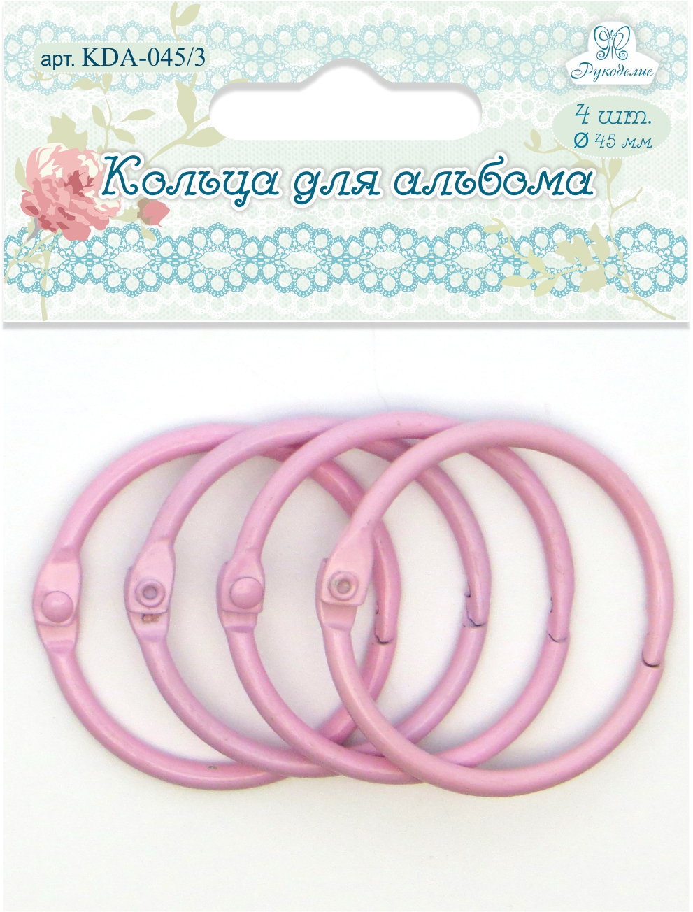 Кольца для альбома KDA-045/3 "Рукоделие" Ø45мм (цвет: розовый), 4шт.