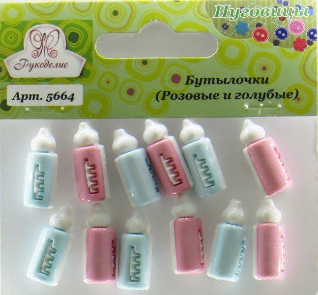Набор пуговиц декоративных "Рукоделие" Бутылочки (розовые и голубые)