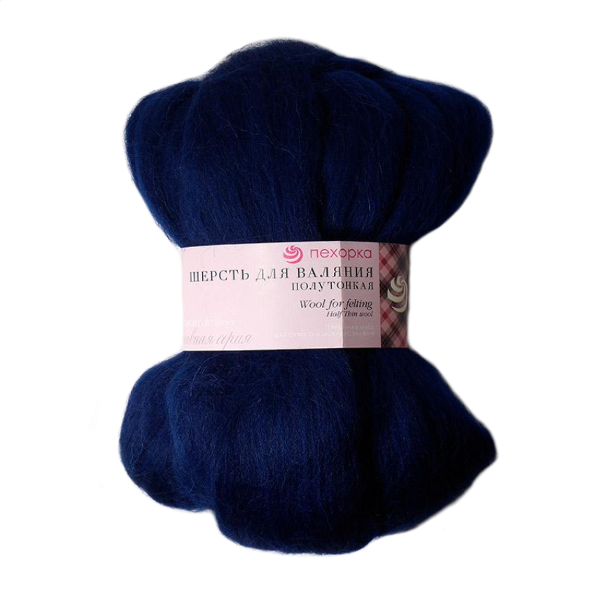 Шерсть для валяния 100% полутонкая шерсть, 50 г, №0004 синий, упак (10шт.)