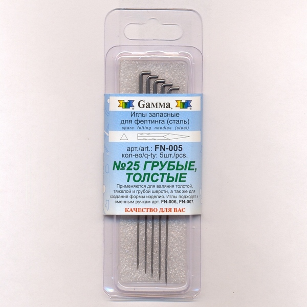 Иглы для валяния (фелтинга) запасные Gamma® FN-005 в блистере 5 шт №25 грубые, толстые
