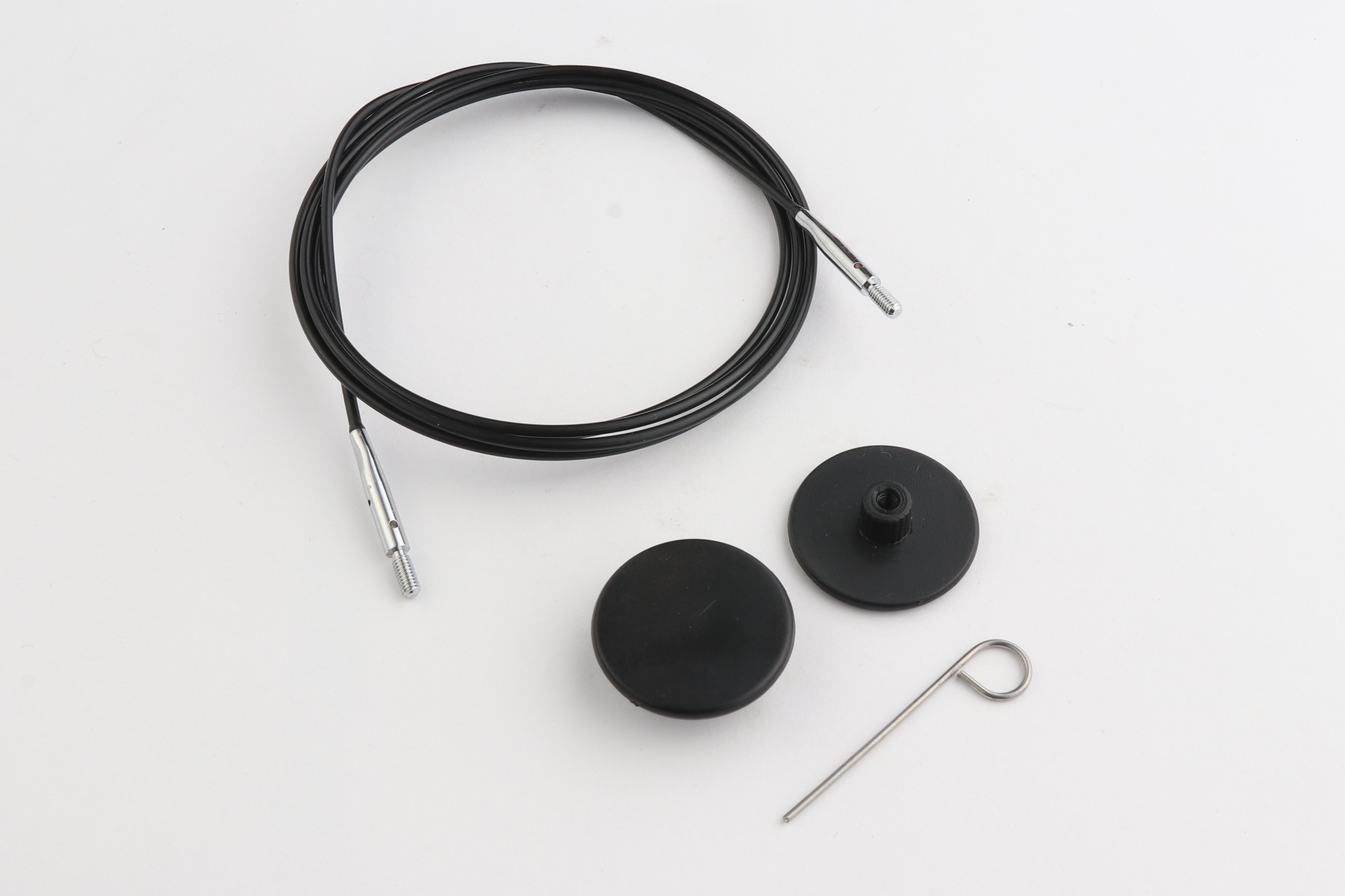 Набор: черный тросик 94 см (120 см) с соед. серебро, 2 заглушки и каб. ключик KnitPro, 10686