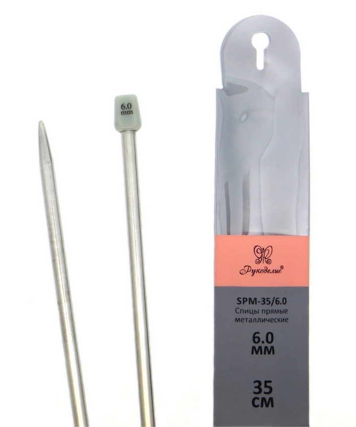 Спицы "Рукоделие" SPM-35/6.0 прямые металл 6,0мм, 35см (2шт.)