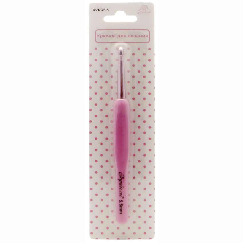 Крючок вязальный "Рукоделие" односторонний алюминиевый с прорезиненной ручкой, розовый, 5.5мм