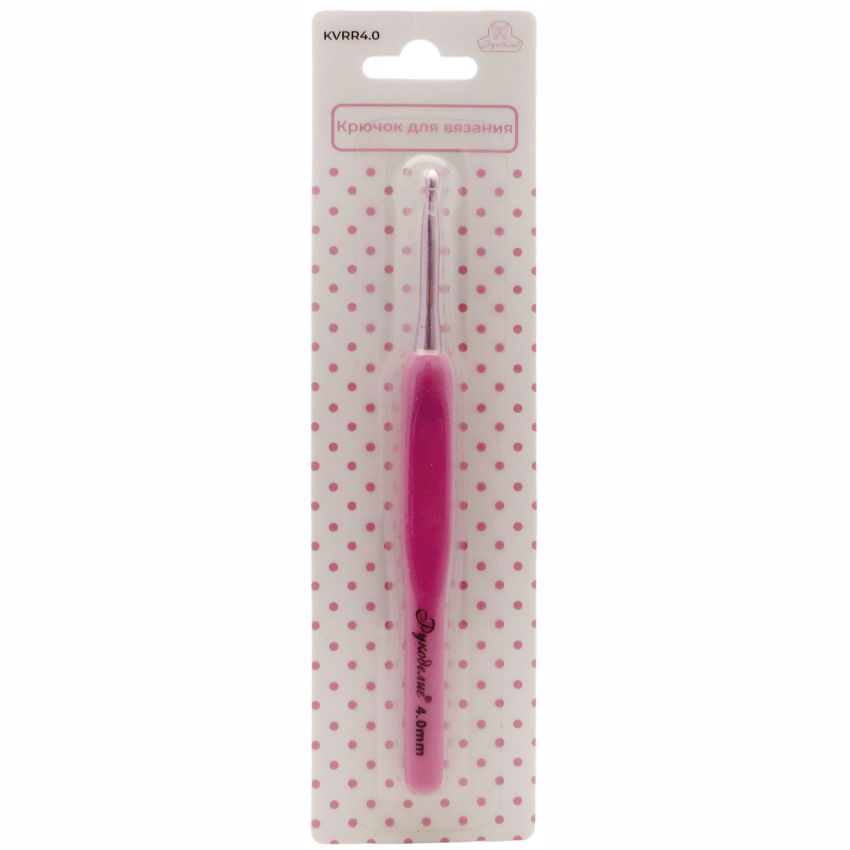 Крючок вязальный "Рукоделие" односторонний алюминиевый с прорезиненной ручкой, розовый, 4.0мм