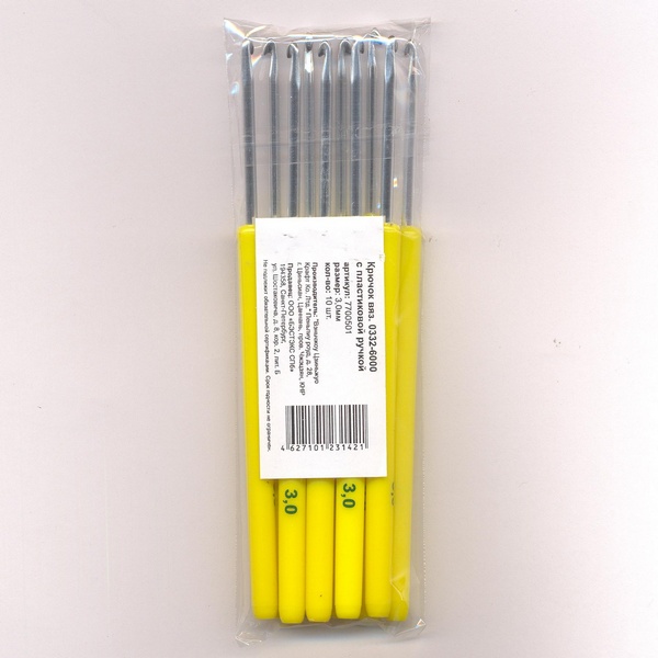 Крючок вяз. 0332-6000, №3.0мм, алюмин. односторон. с пластиковой ручкой