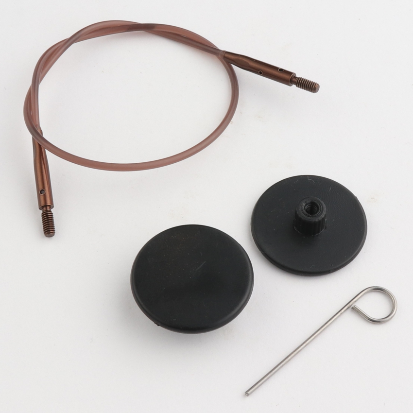Набор: черный вращ. (360°) тросик 76 см (100 см) с соед. серебро, 2 загл и каб. ключик KnitPro,10675