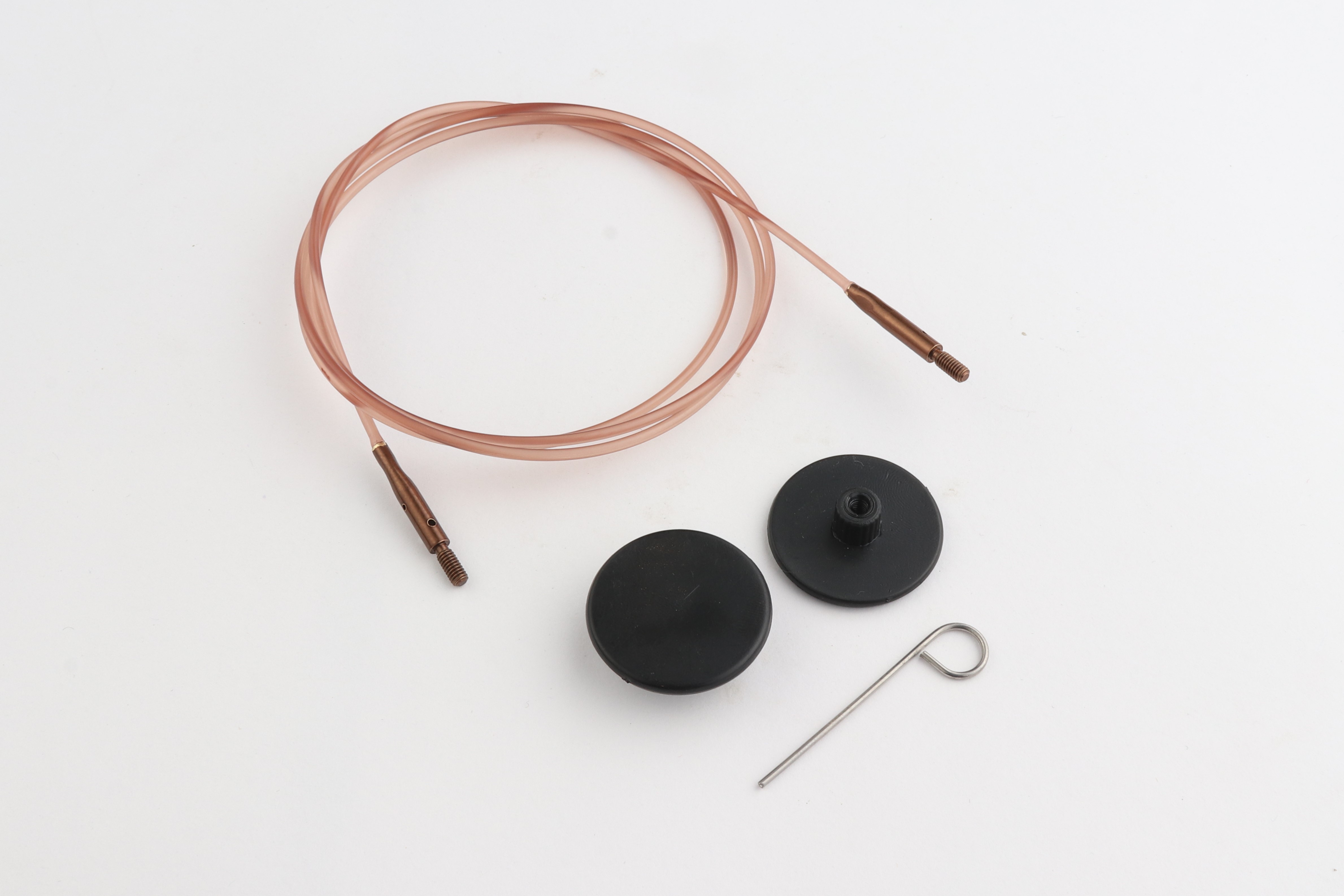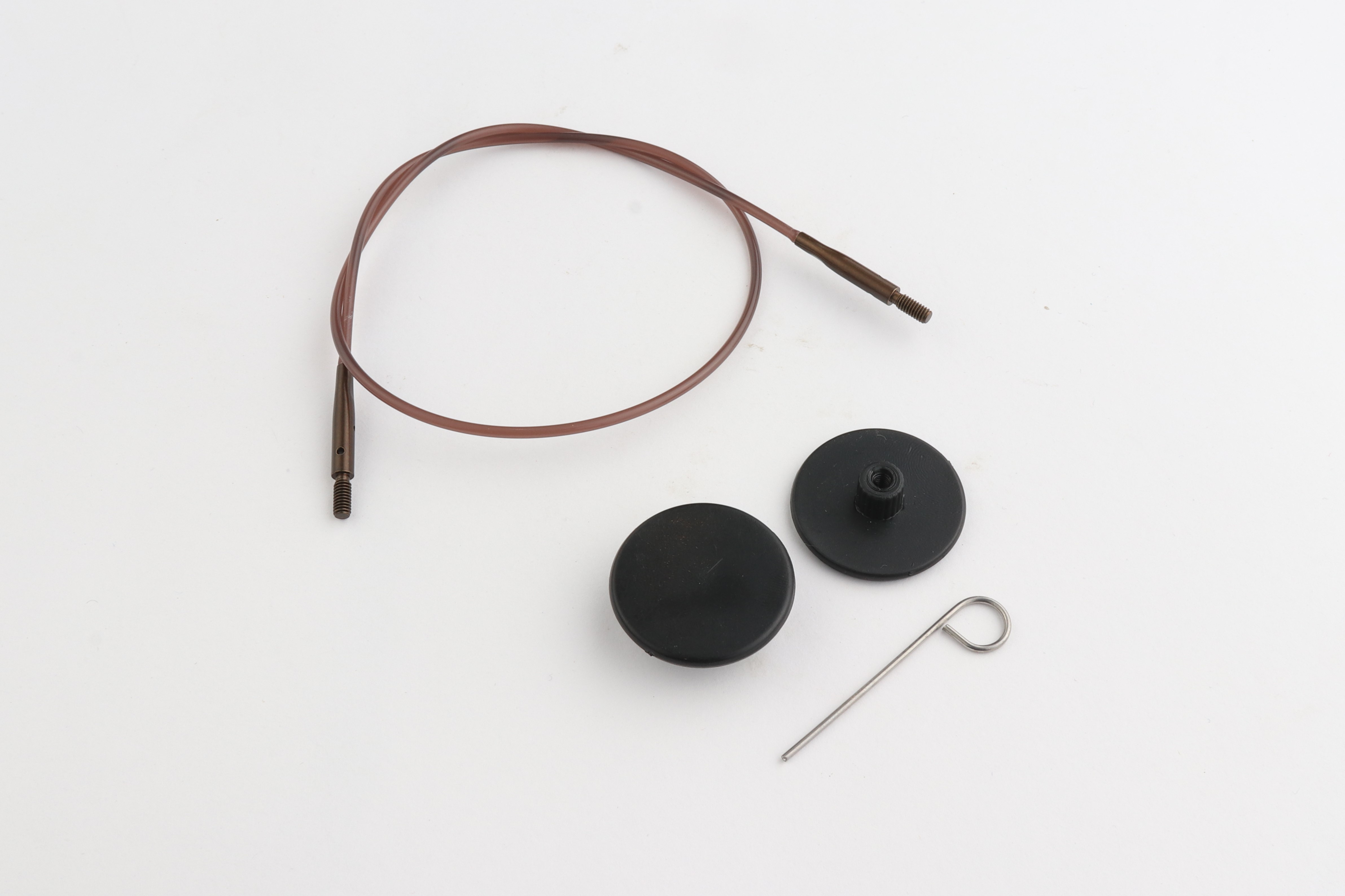 Набор: коричневый тросик 28см (50см), заглушки и кабельный ключик KnitPro, 31292