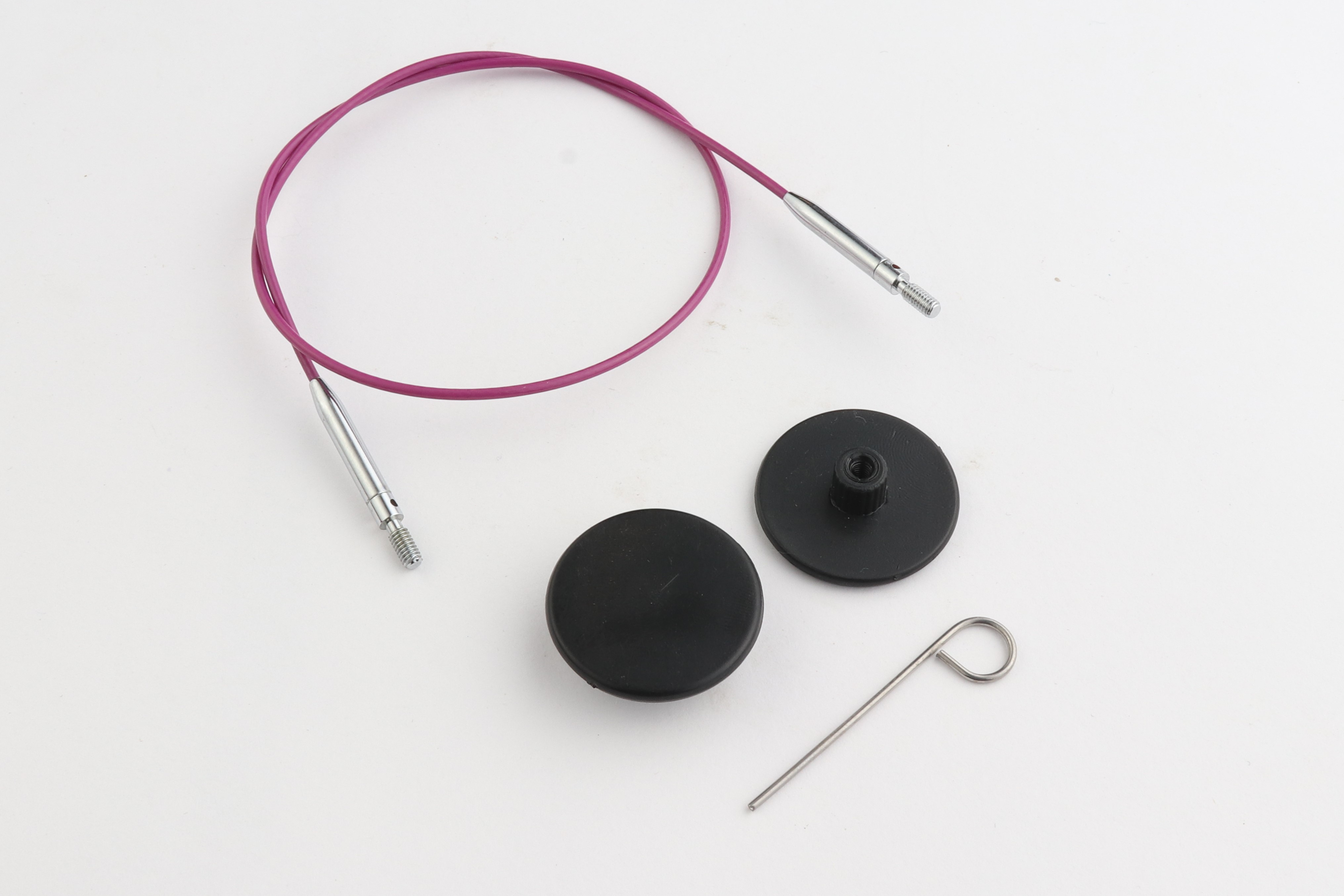 Набор: фиолетовый тросик 94см (120 см), заглушки и кабельный ключик KnitPro, 10504