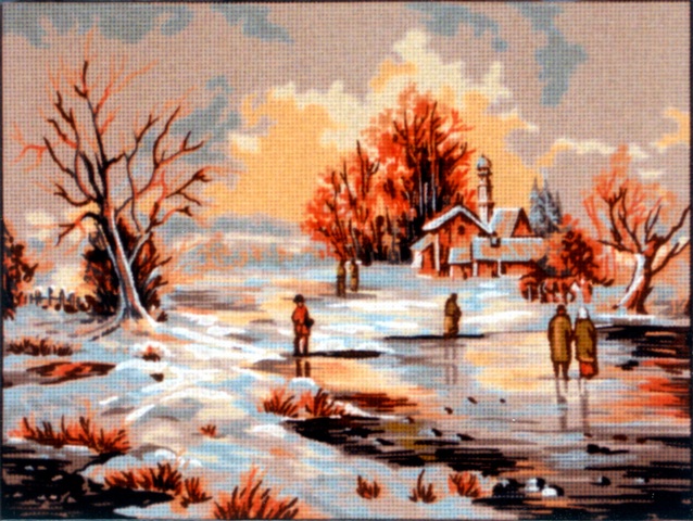 Канва жесткая с рисунком GOBELIN DIAMANT 40.116  Зима Панно 50*40 см