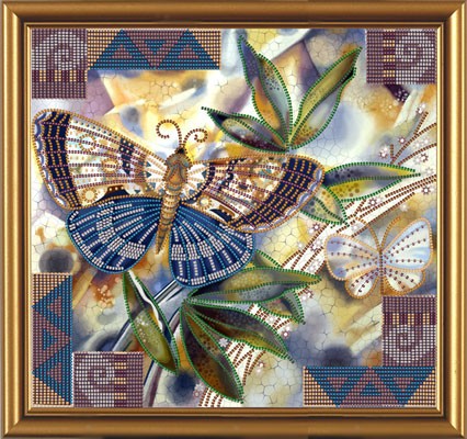В состав набора для вышивания бисером входит атлас - ткань под вышивку бисером, обладающая характерным атласным блеском. Обычно для вышивания бисером берется плотный атлас и дополнительно укрепляется флизелином. Блестящий бисер на атласной ткани смотрится очень эффектно.