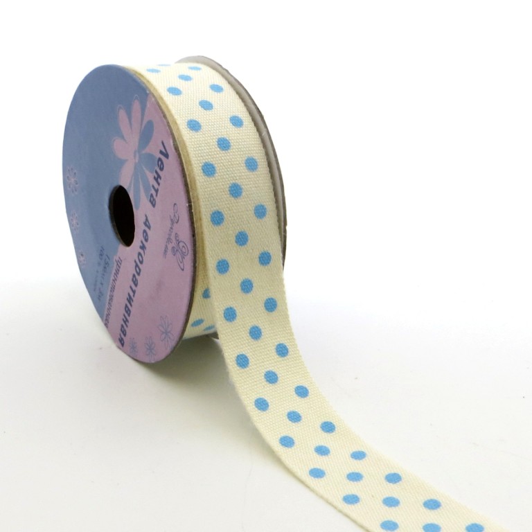 Лента декоративная "Рукоделие" PCRN-002 Горошек (голуб.)15мм х 3м