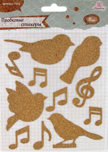 Пробковые стикеры «Рукоделие» 7919 Птицы/ноты