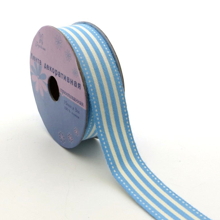 Лента декоративная "Рукоделие" PCRN-002 Полоски (голуб.)15мм х 3м