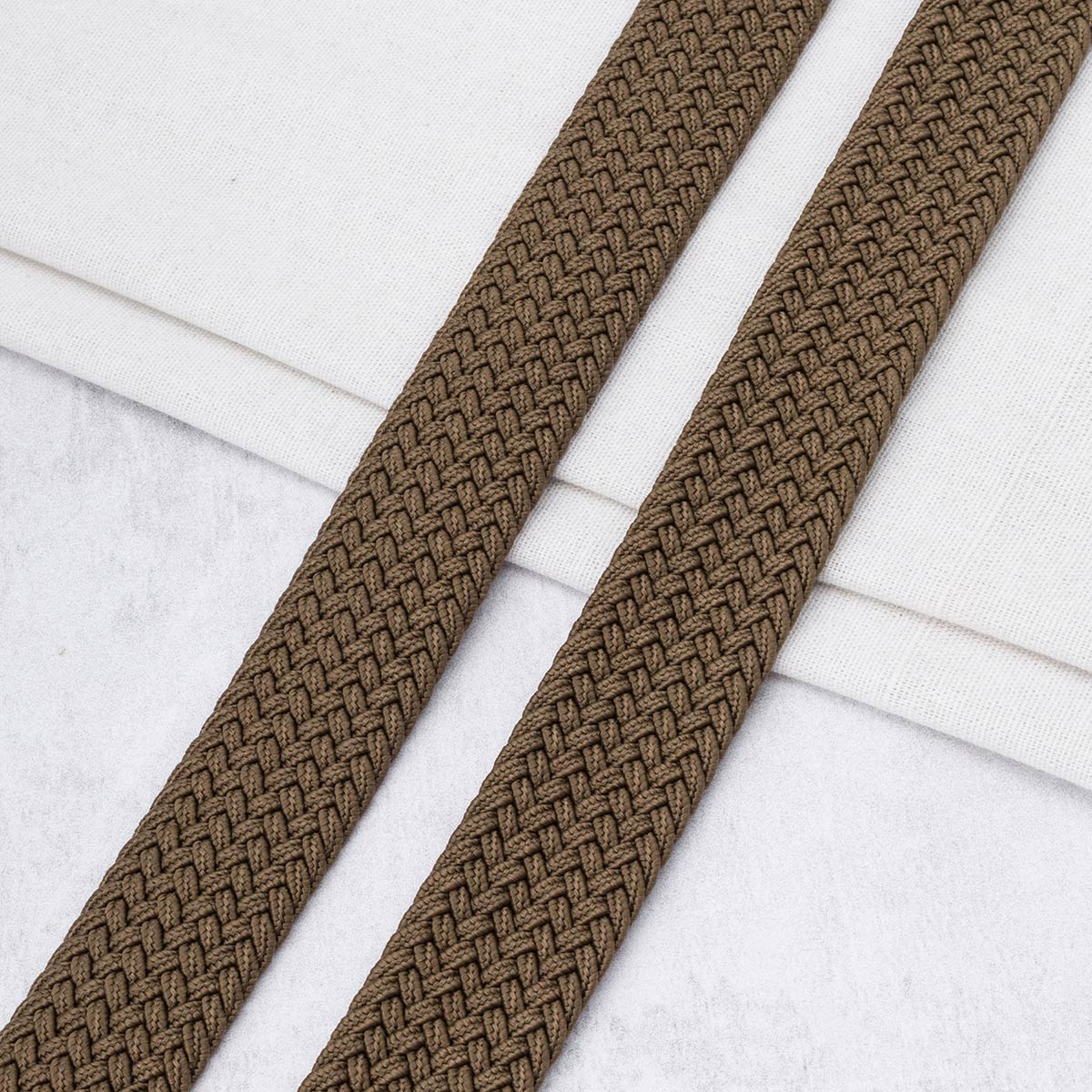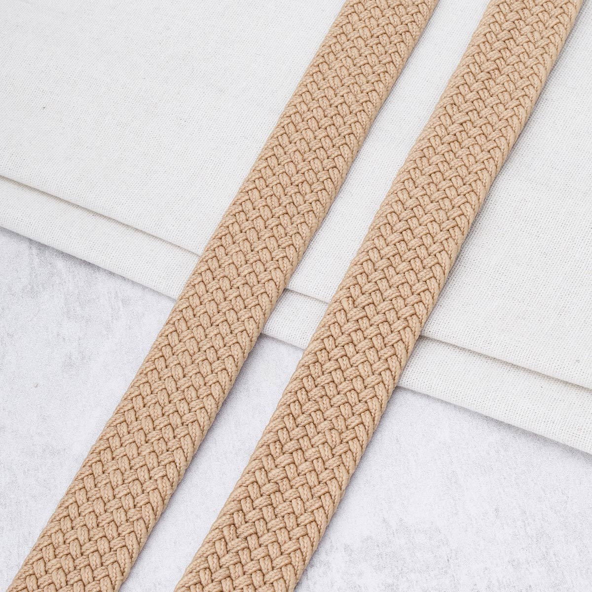 3Al296 Стропа ременная плетеная эластичная (30% латекс, 70% полиэстер) 34мм*22,86м (09 т.бежевый)