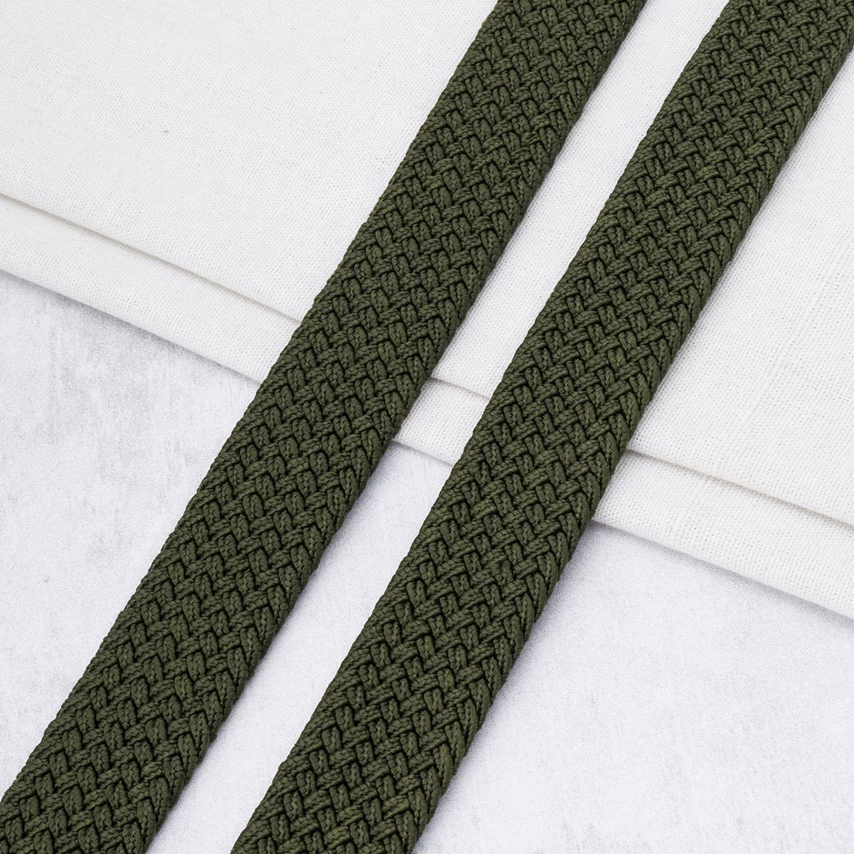 3Al296 Стропа ременная плетеная эластичная (30% латекс, 70% полиэстер) 34мм*22,86м (11 хаки)