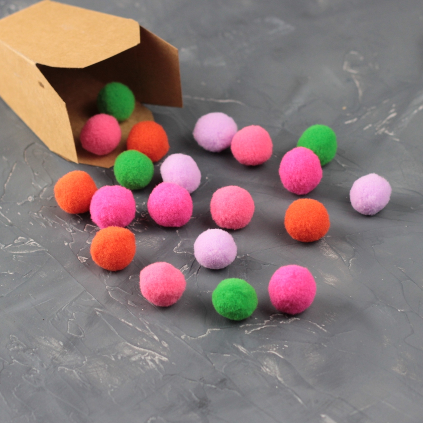 Помпоны, 20 мм, 20 шт/упак, 100% полиэстер, 5 цветов в ассортименте по 4 шт, ТМ Рукоделие