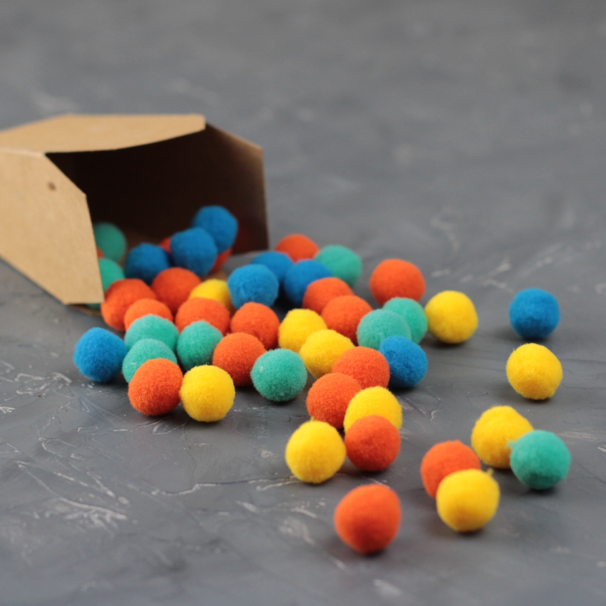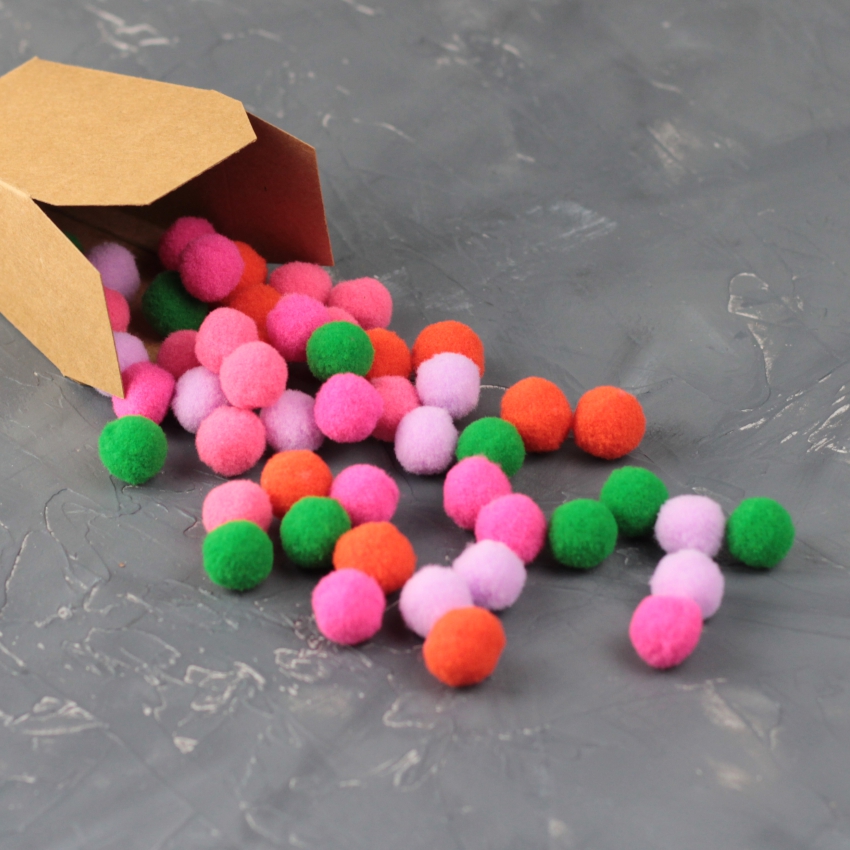 Помпоны, 15 мм, 50 шт/упак, 100% полиэстер, 5 цветов в ассортименте по 10 шт, ТМ Рукоделие