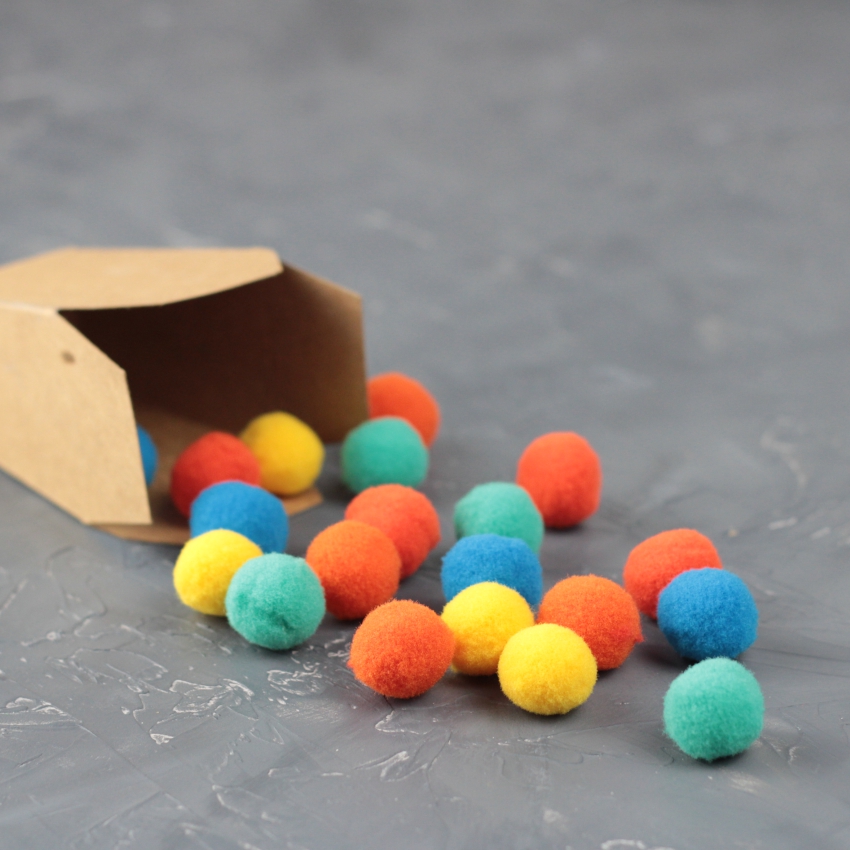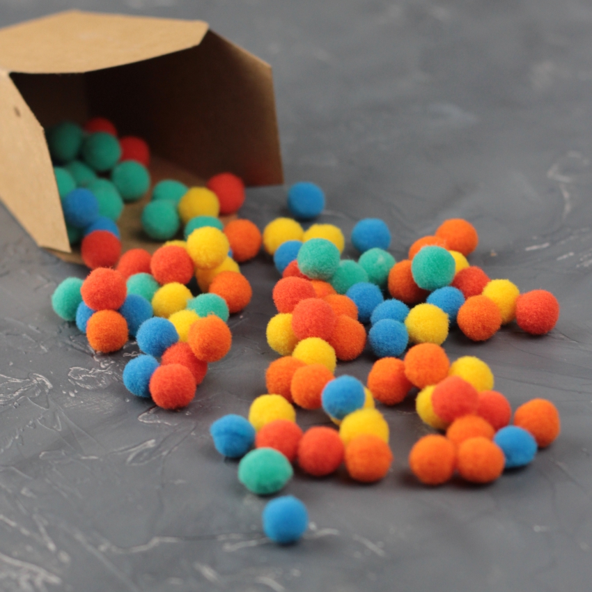 Помпоны, 10 мм, 100 шт/упак, 100% полиэстер, 5 цветов в ассортименте по 20 шт, ТМ Рукоделие