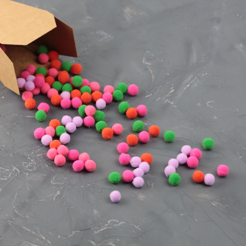 Помпоны, 8  мм, 100 шт/упак, 100% полиэстер, 5 цветов в ассортименте по 20 шт, ТМ Рукоделие