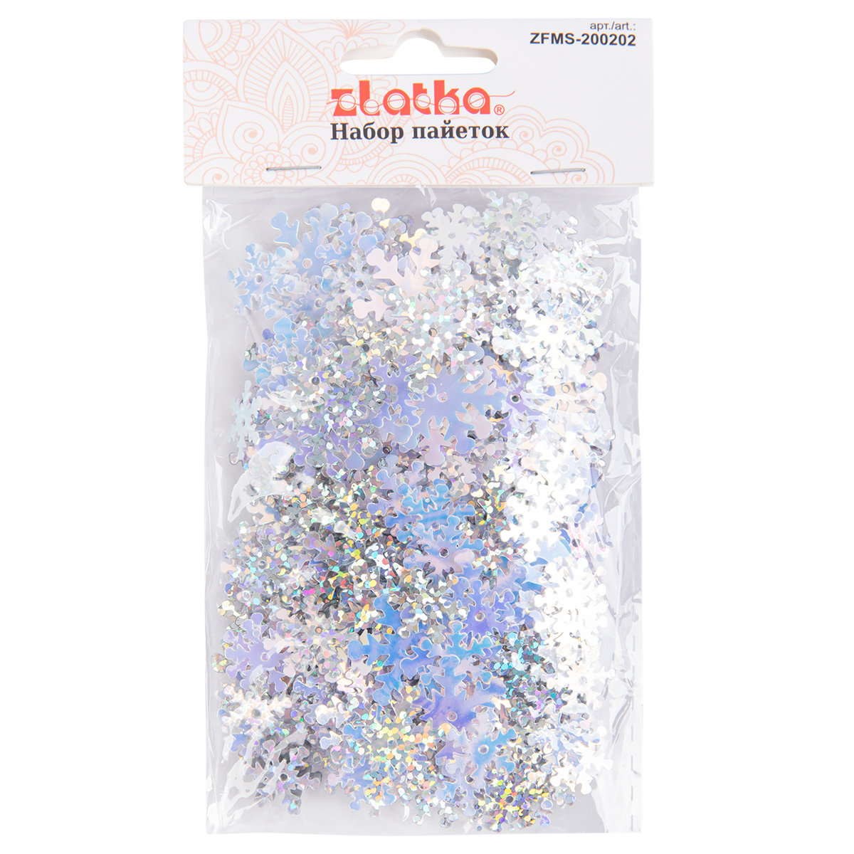 Пайетки набор «Zlatka» ZFMS-200202 13, 20 мм №1 снежинки микс