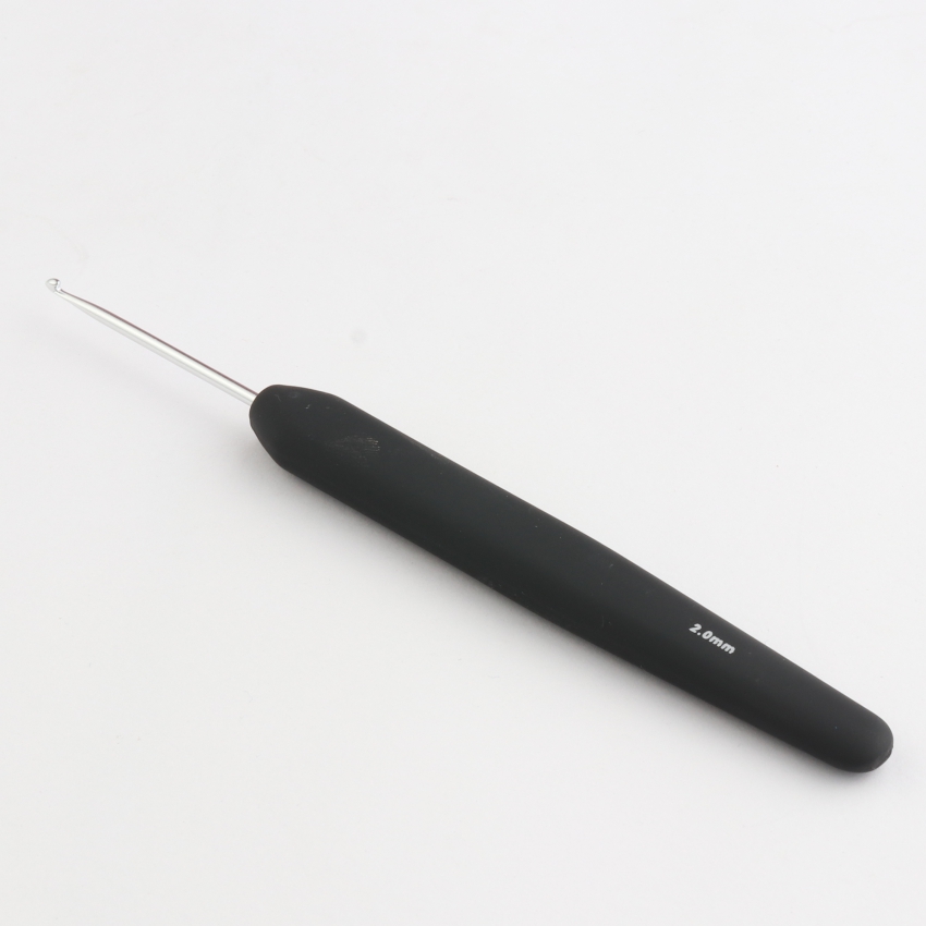 Крючок алюминиевый для вязания с эргономичной черной ручкой, серебристый цвет, 2.00мм, KnitPro,30811
