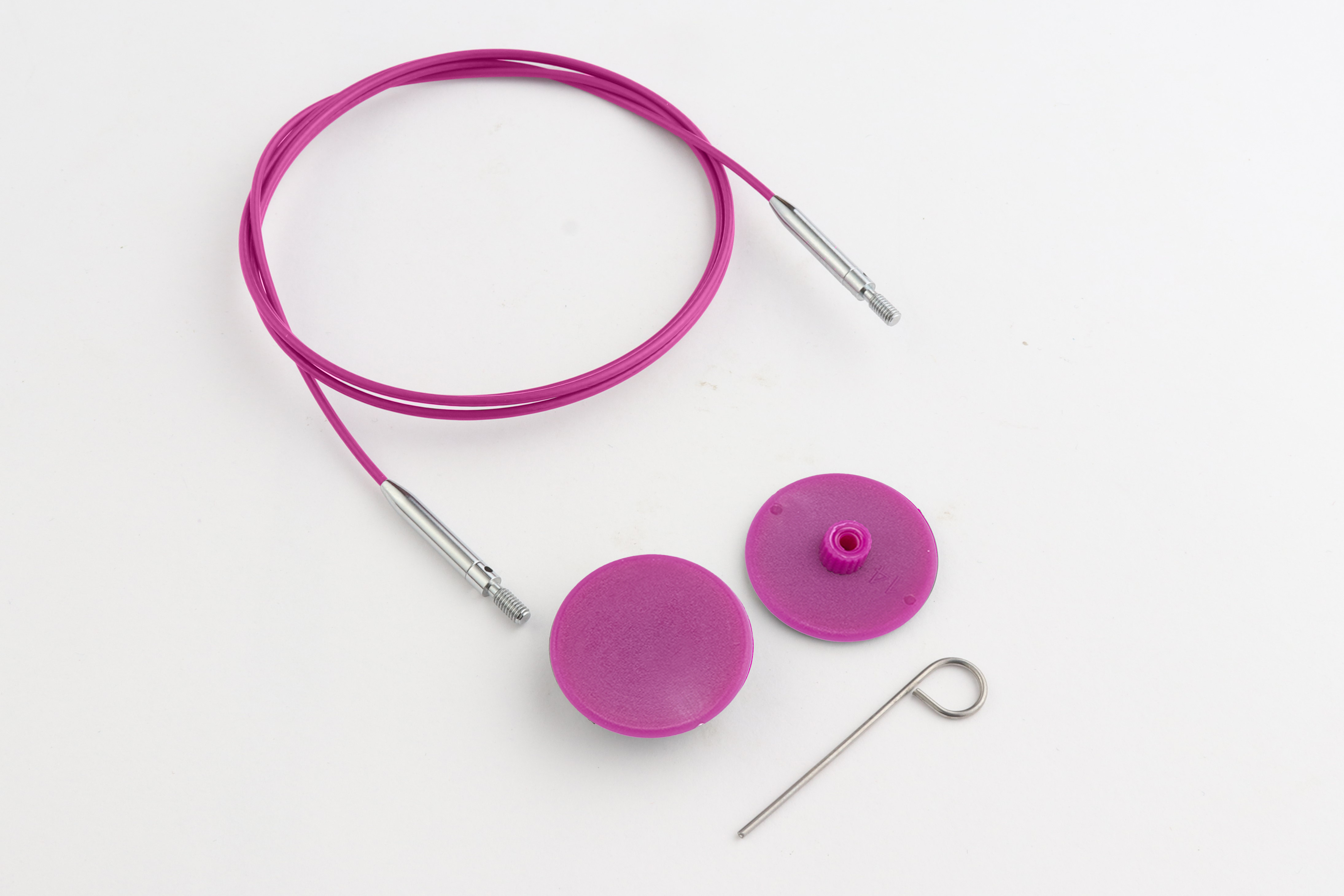Набор: фиолетовый стальной тросик 76см (100см), 2 заглушки и кабельный ключик KnitPro, 10665