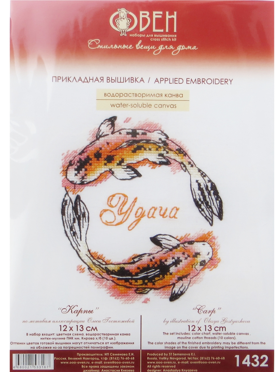 Набор для вышивания «Овен» 1432 "Карпы"13*12 см