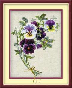 Набор для вышивания «Сотвори Сама» 1020 Букет анютиных глазок на льне,24х30 см